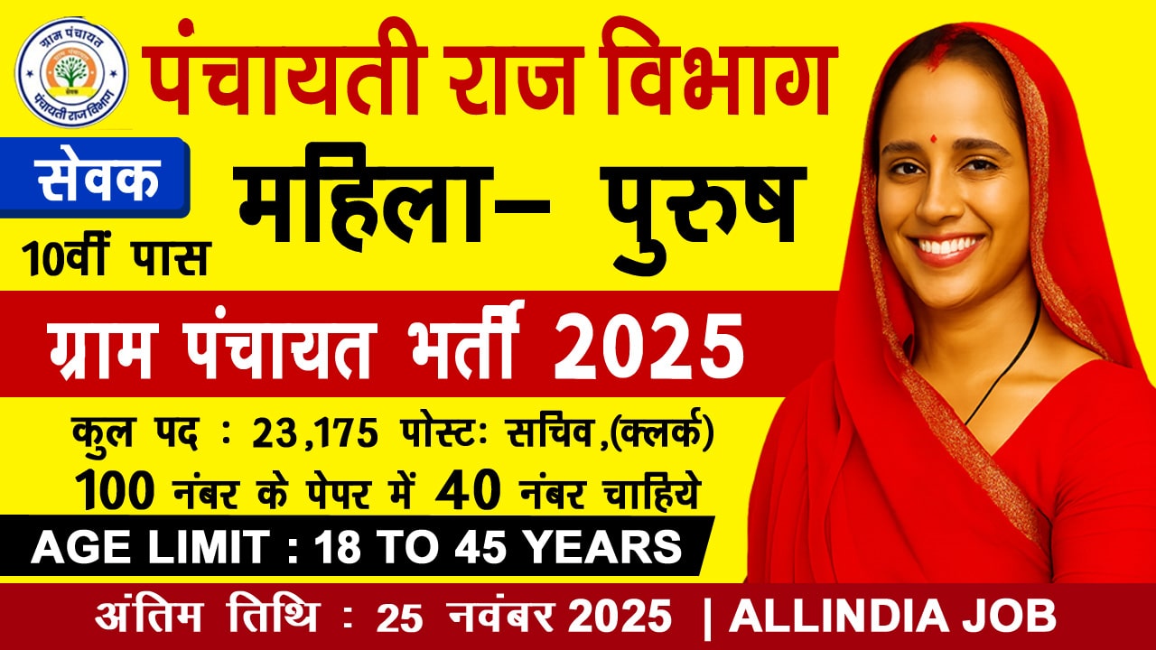 Panchayati Raj Vibhag Recruitment 2025 – Apply Online for 23,175 Panchayat Sachiv & LDC Posts